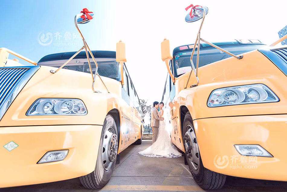 Cô dâu Zhang Fan (24 tuổi) cùng chồng mình là Wang Gaoming khiến cư dân mạng xôn xao với bộ ảnh cưới độc đáo, trẻ trung và ấn tượng cùng những chiếc xe buýt.