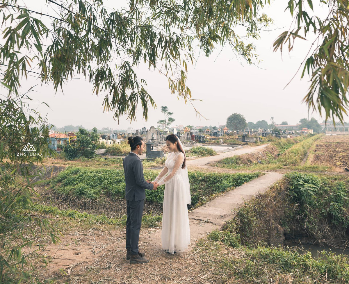 Bộ ảnh cũng được ekip thực hiện ở 1 nghĩa trang Sơn Tây - bởi đây là nơi lần đầu cô dâu, chú rể gặp nhau.