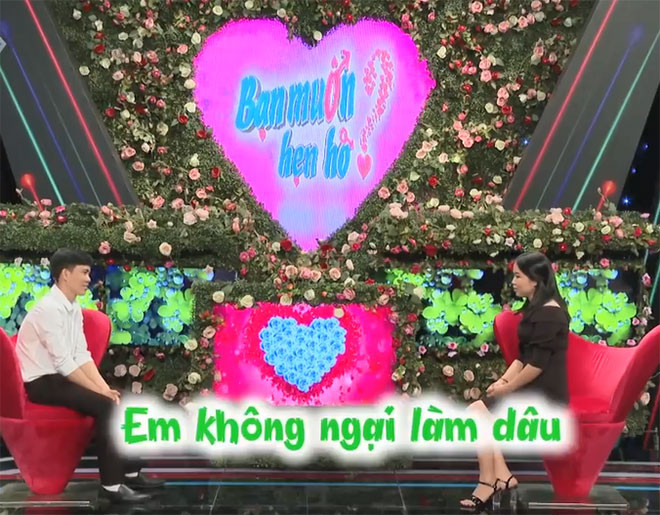Tham gia chương trình, đàng gái mong muốn tìm bạn trai không hút thuốc, không hôi, không hô, không hói, cao từ 1m7, khuôn mặt dễ nhìn và nụ cười thân thiện. Đàng trai chỉ cần một người phụ nữ có tâm luôn hướng về gia đình, ngoại hình ưa nhìn, biết nấu ăn, chăm lo và biết quan tâm chia sẻ.