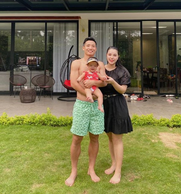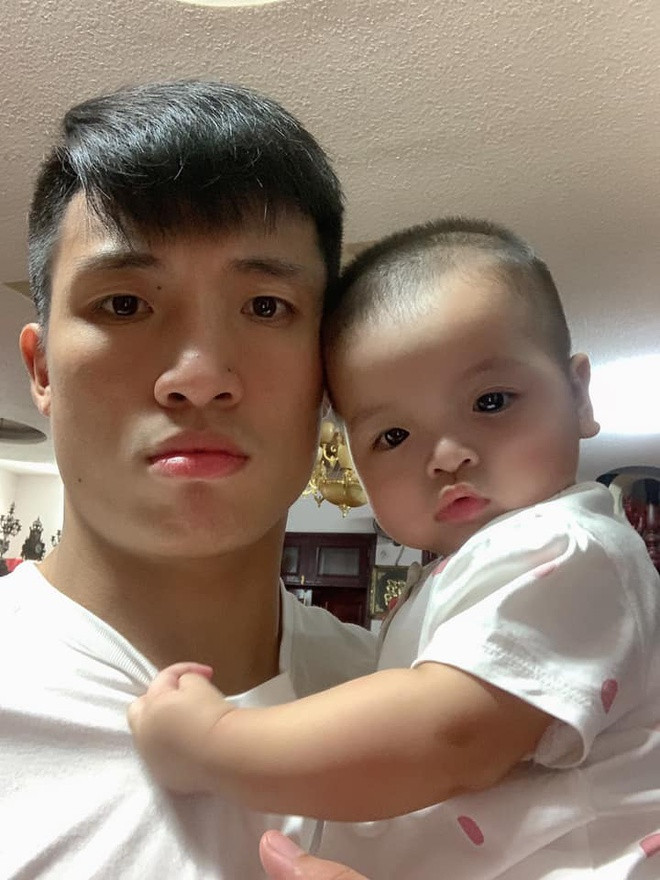 Trên trang cá nhân, trung vệ tuyển Việt Nam khoe nhiều ảnh cùng con tạo dáng hay làm biểu cảm mặt xấu hài hước. Bà xã của nam cầu thủ cũng phải thừa nhận bản thân lắm khi cảm thấy bị cho "ra rìa" vì độ quấn quýt của hai cha con.