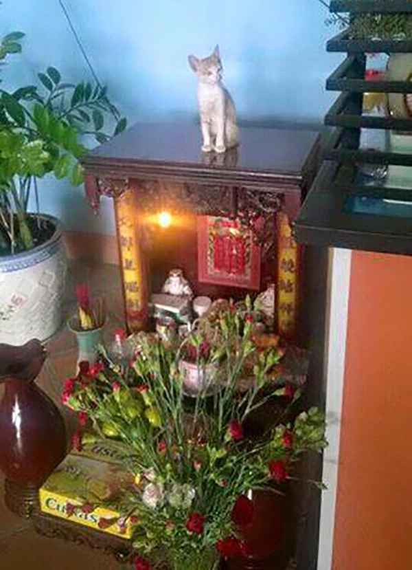 Giật mình không biết nhà mình thờ thêm "thần mèo" từ lúc nào.