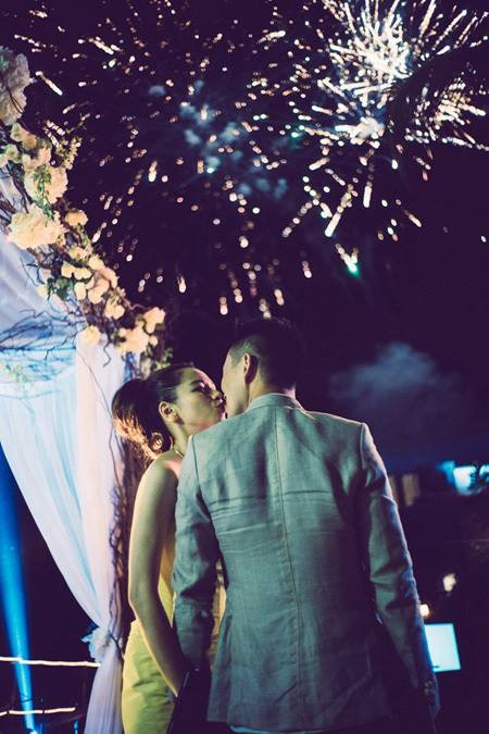 Cặp cô dâu chú rể chọn pháo hoa là điểm nhấn cho màn khóa môi lãng mạn của mình.