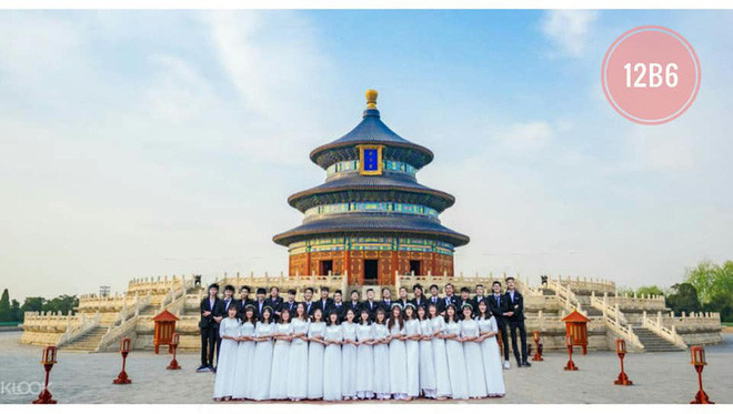 Trong những bức ảnh kỷ yếu của mình,m đội hình cả lớp xuất hiện cùng nhau, cùng loại trang phục và cùng biểu cảm chỉ có phông nền đằng sau là thay đổi.