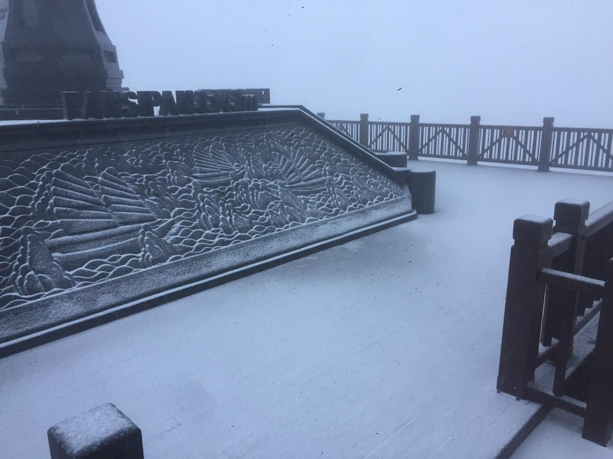 Những hình ảnh về mưa tuyết rơi phủ trắng đỉnh Fansipan xuất hiện nhiều trên mạng xã hội, thu hút sự chú ý của cư dân mạng.