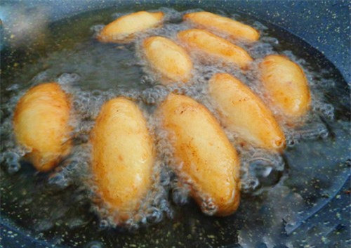 Sau khi trộn đều thì nặn thành từng miếng chả tròn, dẹt, dày khoảng 0.5 cm. Đổ dầu vào chảo, khi dầu sôi thì cho từng miếng chả vào chiên. Sau khi chả vàng đều 2 mặt thì vớt ra, để ráo dầu.