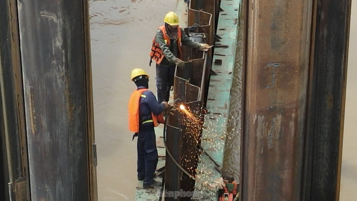 Trên công trường cầu Tứ Liên (Hà Nội), hàng trăm công nhân đang khẩn trương thi công ngày đêm.