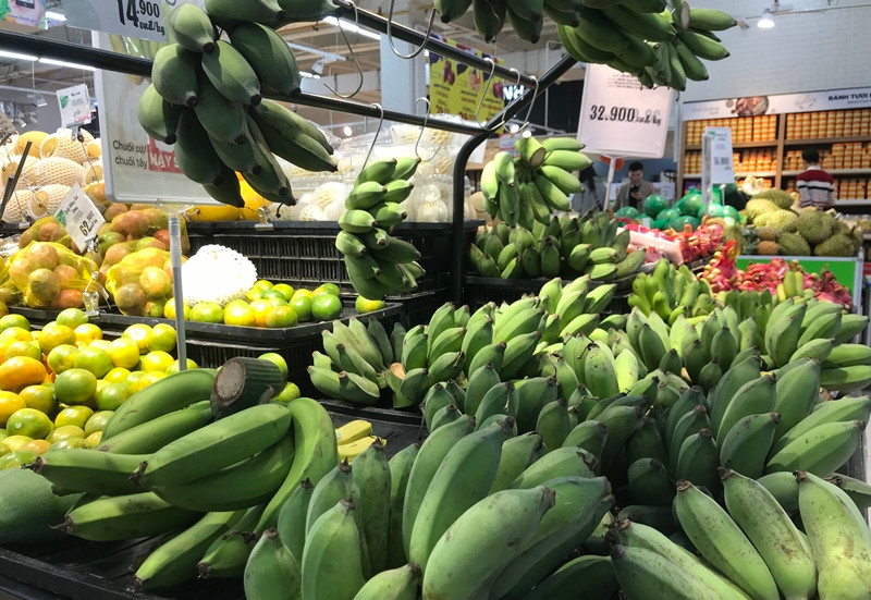 Các loại hoa quả tươi cũng được cung ứng lấp đầy kệ.