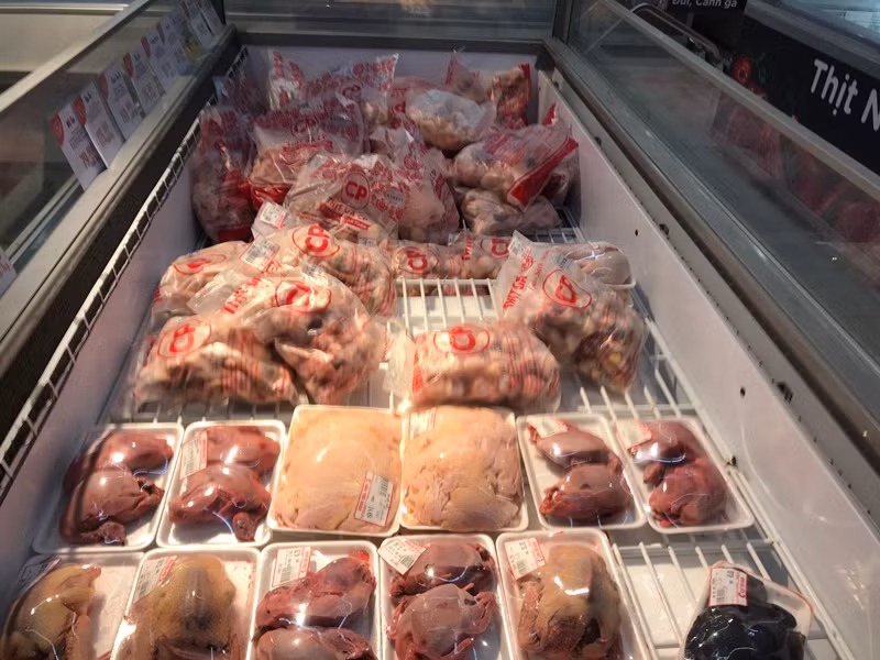 Các tủ thực phẩm thịt tươi sống tràn ngập, khách không lo thiếu hàng.