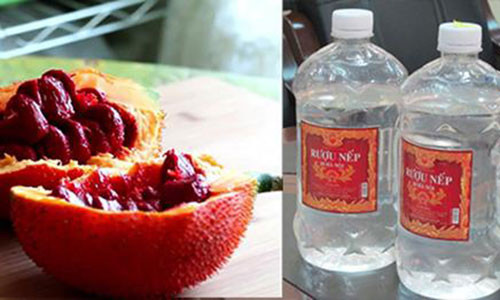 | Cho rượu trắng vào bát gấc sao cho rượu vừa ngập gấc, rồi trộn đều thành hỗn hợp. |