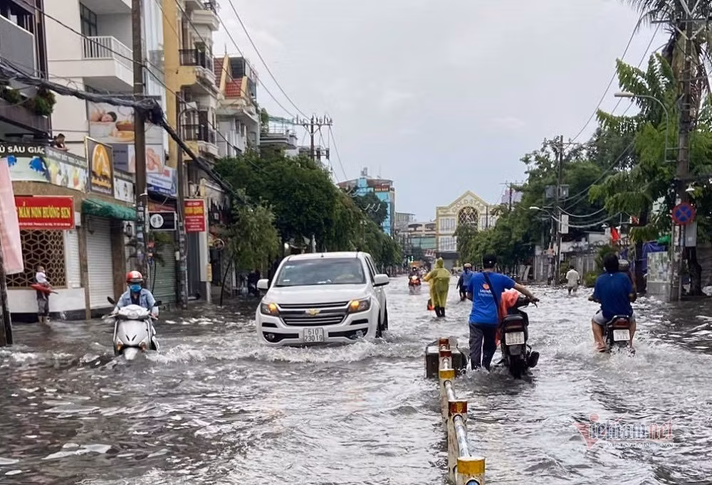 TP.HCM xuất hiện mưa lớn trên diện rộng khiến nhiều nơi ngập nặng, trong đó đáng kể là một số tuyến đường cửa ngõ sân bay Tân Sơn Nhất.