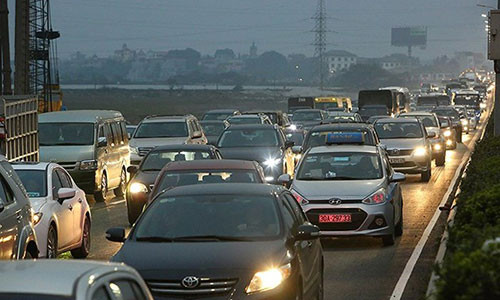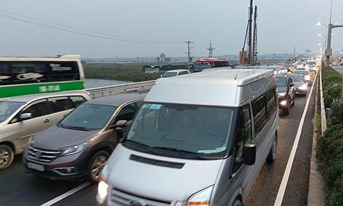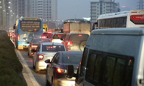| Đường trên cao ùn tắc kéo dài theo hướng đi Mỹ Đình. |