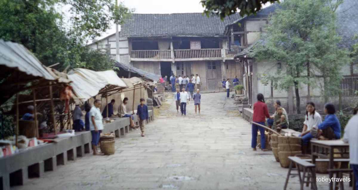 Đường làng ngày họp chợ, người dân thư giãn trong bể bơi suối nước nóng, ao cá của một nông trang... là loạt ảnh vô cùng hấp dẫn về vùng nông thôn huyện Đại Túc, Trung Quốc năm 1984.