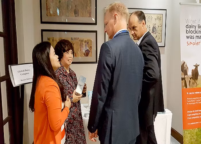 | Bà Thái Hương thảo luận về định hướng sản xuất các sản phẩm sữa “Vì sức khỏe cộng đồng” với các chuyên gia ngành sữa thế giới ngày 28/6. |