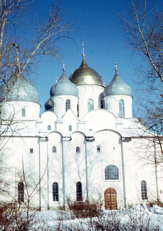 Nhà thờ Thánh Sophia và tháp đồng hồ ở điện Kremly Novgorod.
