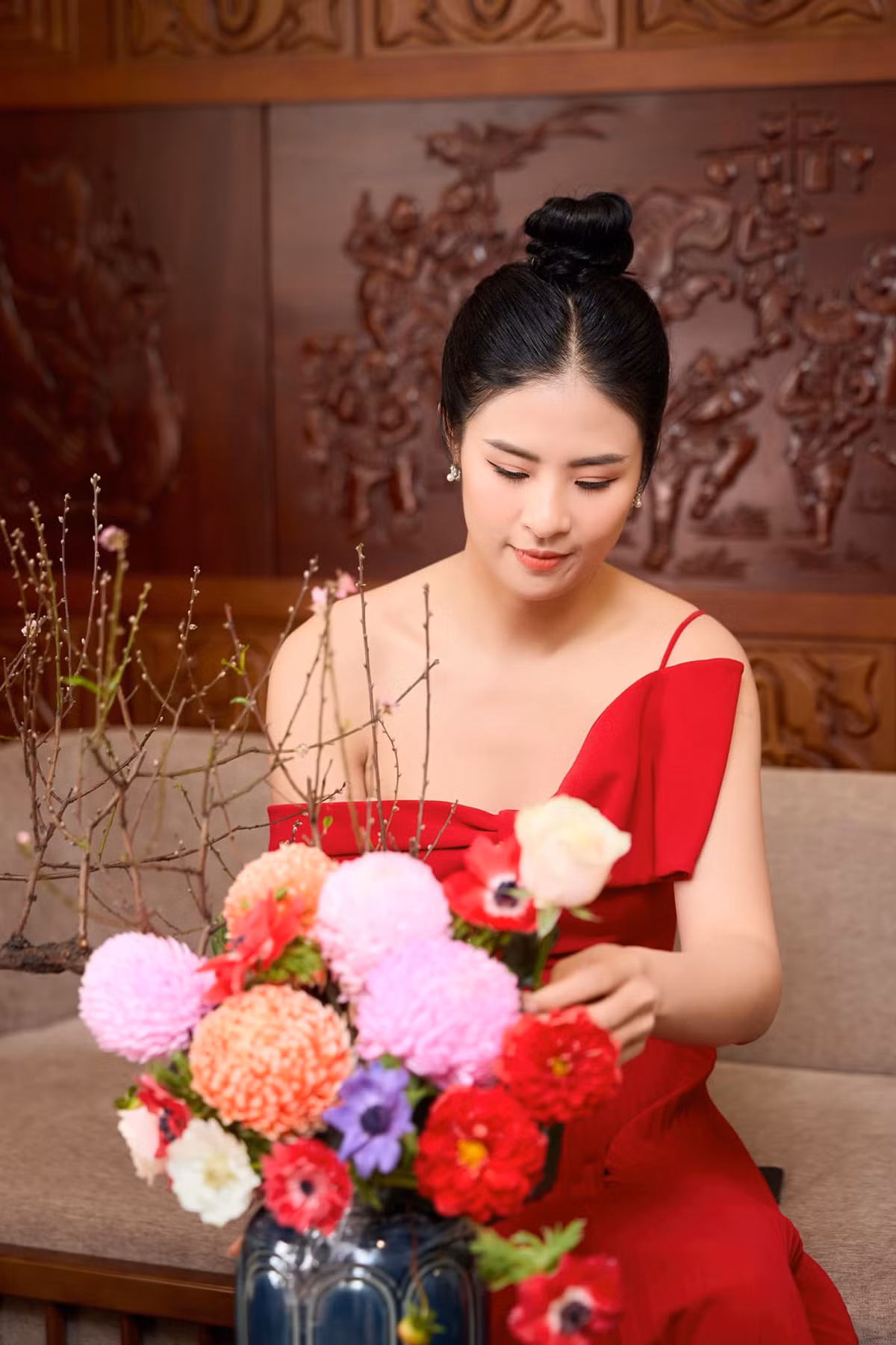 Ngọc Hân cho biết tự tay chuẩn bị hoa để cắm cho cả 2 gia đình trưng trong dịp Tết. Cô còn học cách cắm những bình hoa công phu, mang đậm hương vị Tết truyền thống.