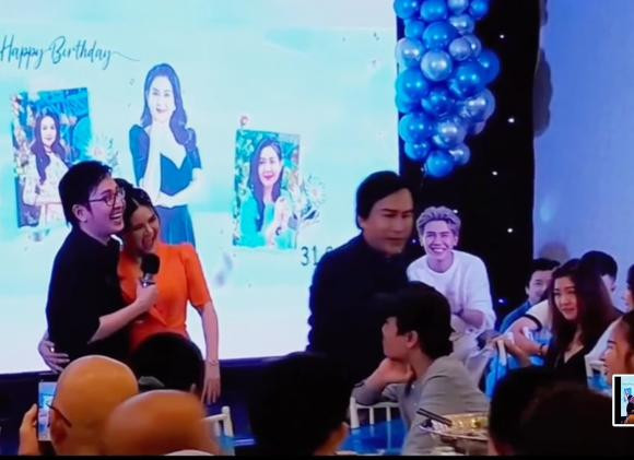Ngay trong tiệc, Trinh Trinh không ngại ngần bày tỏ tình cảm quý mến Vũ Luân. Cô ôm bạn diễn và nhỏ nhẹ bảo: "Nay anh cho phép anh cho em làm một điều mà bấy lâu nay em muốn làm". Vũ Luân hỏi lại: "Vụ gì?". Ngồi dưới hàng ghế khán giả, Kim Tử Long lập tức tỏ thái độ và la to: "Ê đừng có nói hôn nha". Sau đó, anh nhanh chóng làm vẻ hờn dỗi và bỏ đi khiến khách khứa bật cười giòn giã. Đây chỉ là màn ngẫu hứng tấu hài của "Ông hoàng cải lương Hồ quảng" mà thôi vì trong thực tế anh rất tôn trọng tình đồng nghiệp của vợ và bạn diễn.