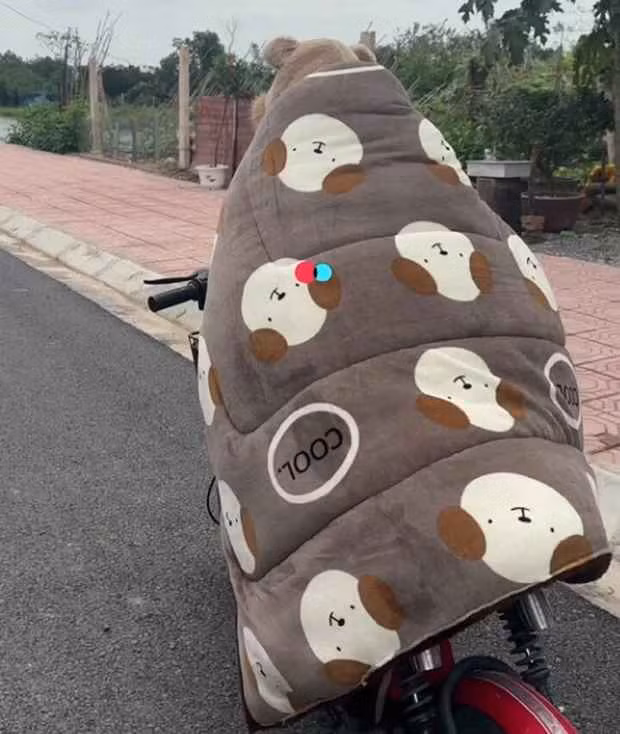 Kể cả loại chăn đại hàn siêu ấm, siêu nặng cũng được người đi xe máy "trưng dụng" để đảm bảo giữ ấm cho cơ thể khi ra đường với thời tiết hạ sâu như này.