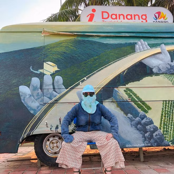 Những hình ảnh ghi lại là cảnh cô gái này đi du lịch Đà Nẵng. Thay vì xúng xính những bộ quần áo hợp mốt hay tranh thủ khoe dáng thì cô ấy lại mặc đồ kín mít như ninja, áo chống nắng, vái chống nắng, kính râm, khẩu trang kín từ đầu tới chân để... đối phó với trời nắng