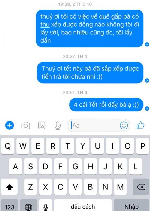 Tin nhắn đòi nợ rõ rành rành như thế mà bảo không thấy à!
