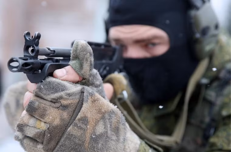 Trực thăng đổ cảnh sát đặc nhiệm Nga xuống khu vực quân khủng bố chiếm giữ.
