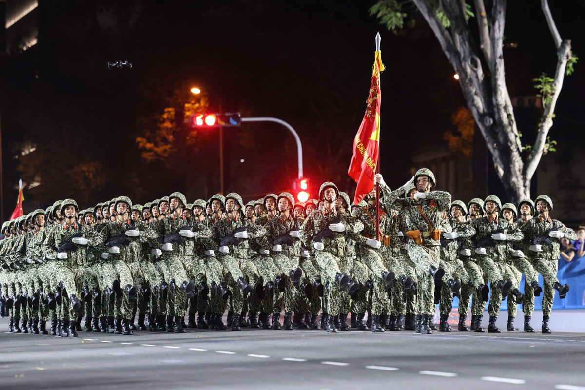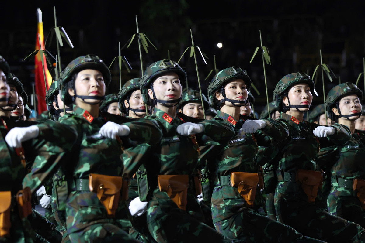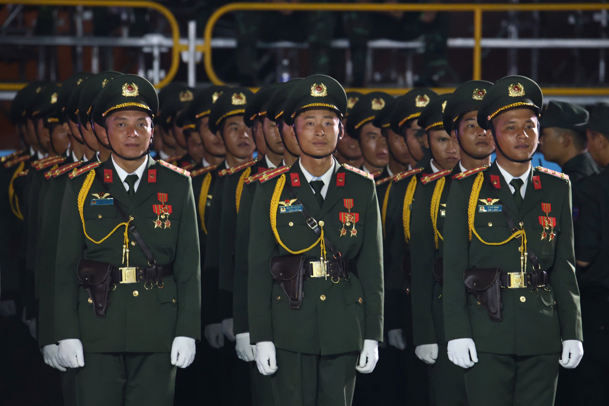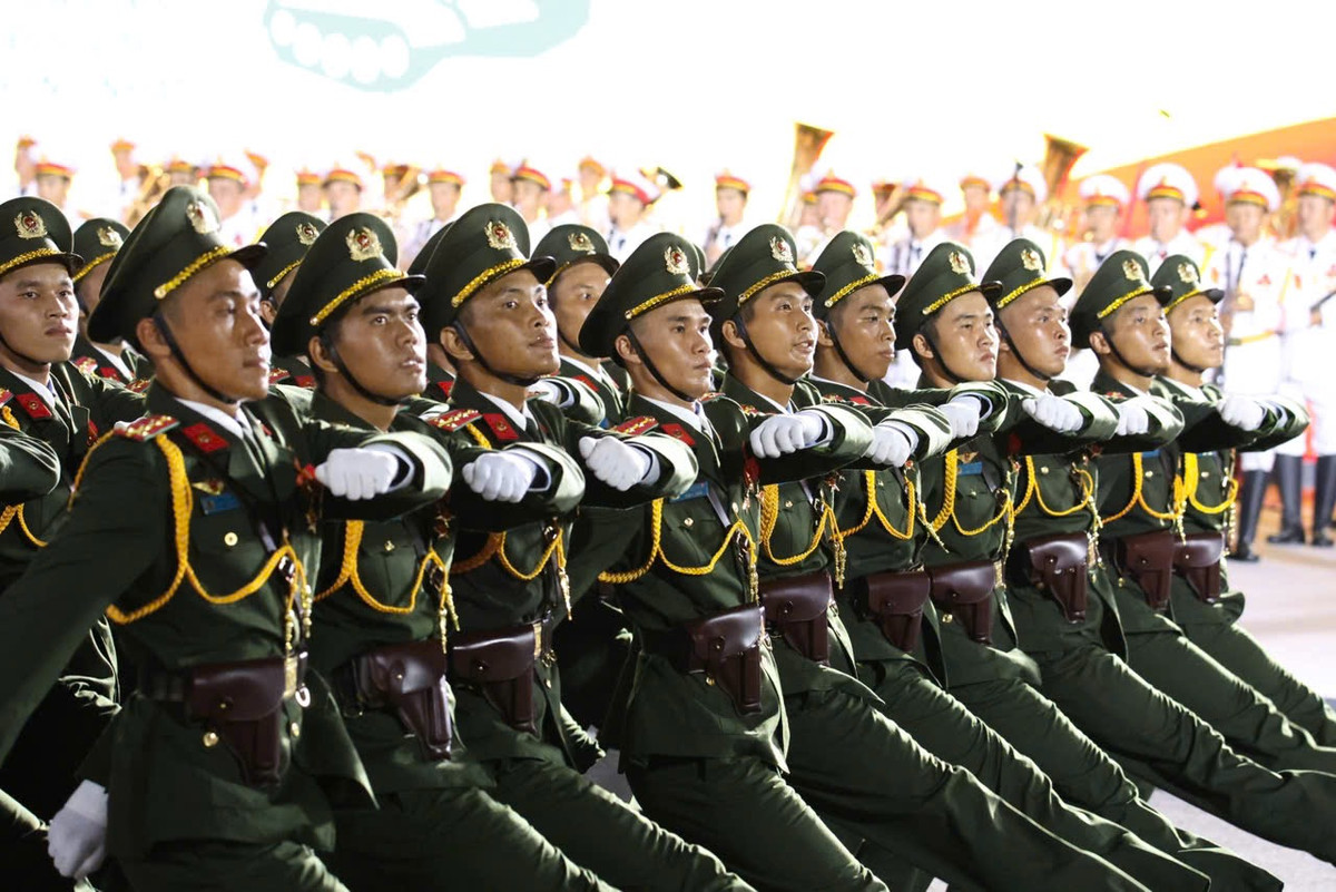 Hình ảnh các cán bộ chiến sĩ khỏe khoắn, rắn rỏi, hùng dũng động tác đều tăm tắp trong buổi hợp luyện diễu binh diễu hành khiến người dân theo dõi hết lời ngợi khen và cổ vũ nhiệt tình.