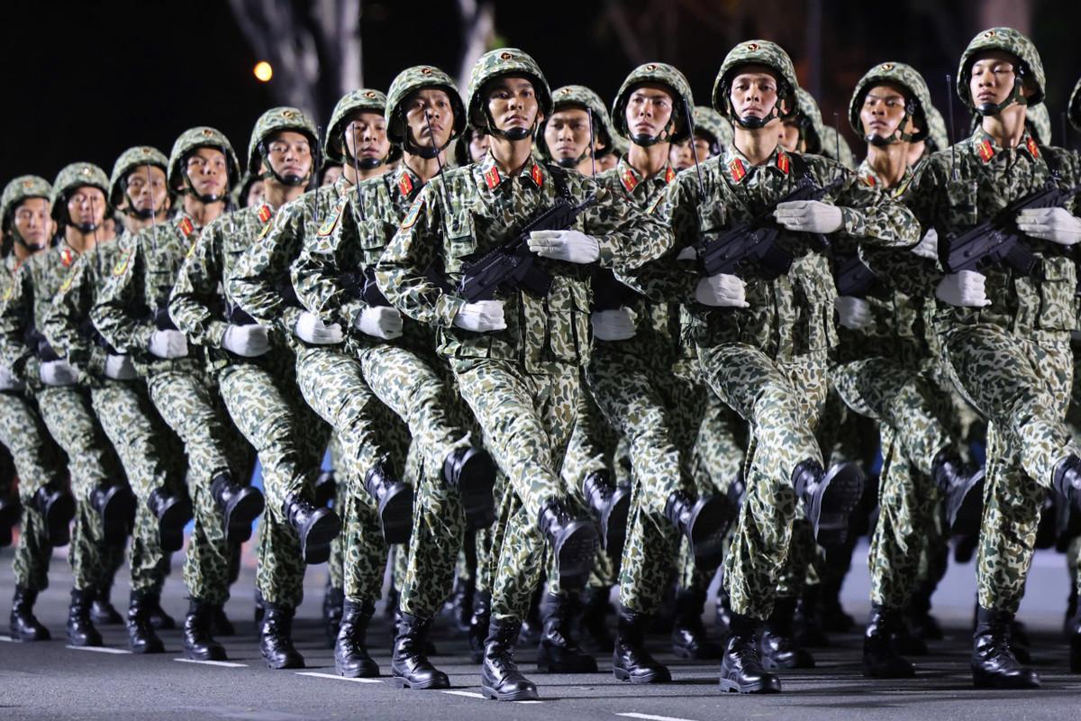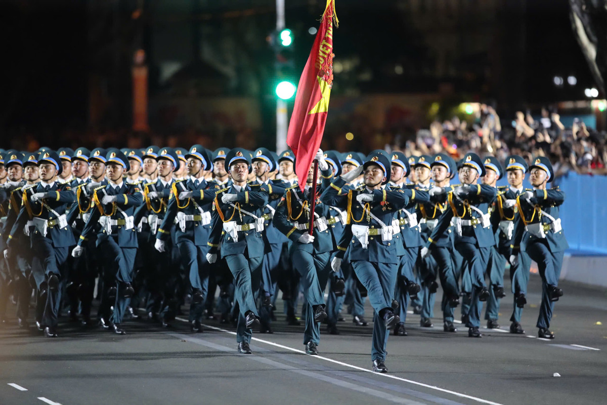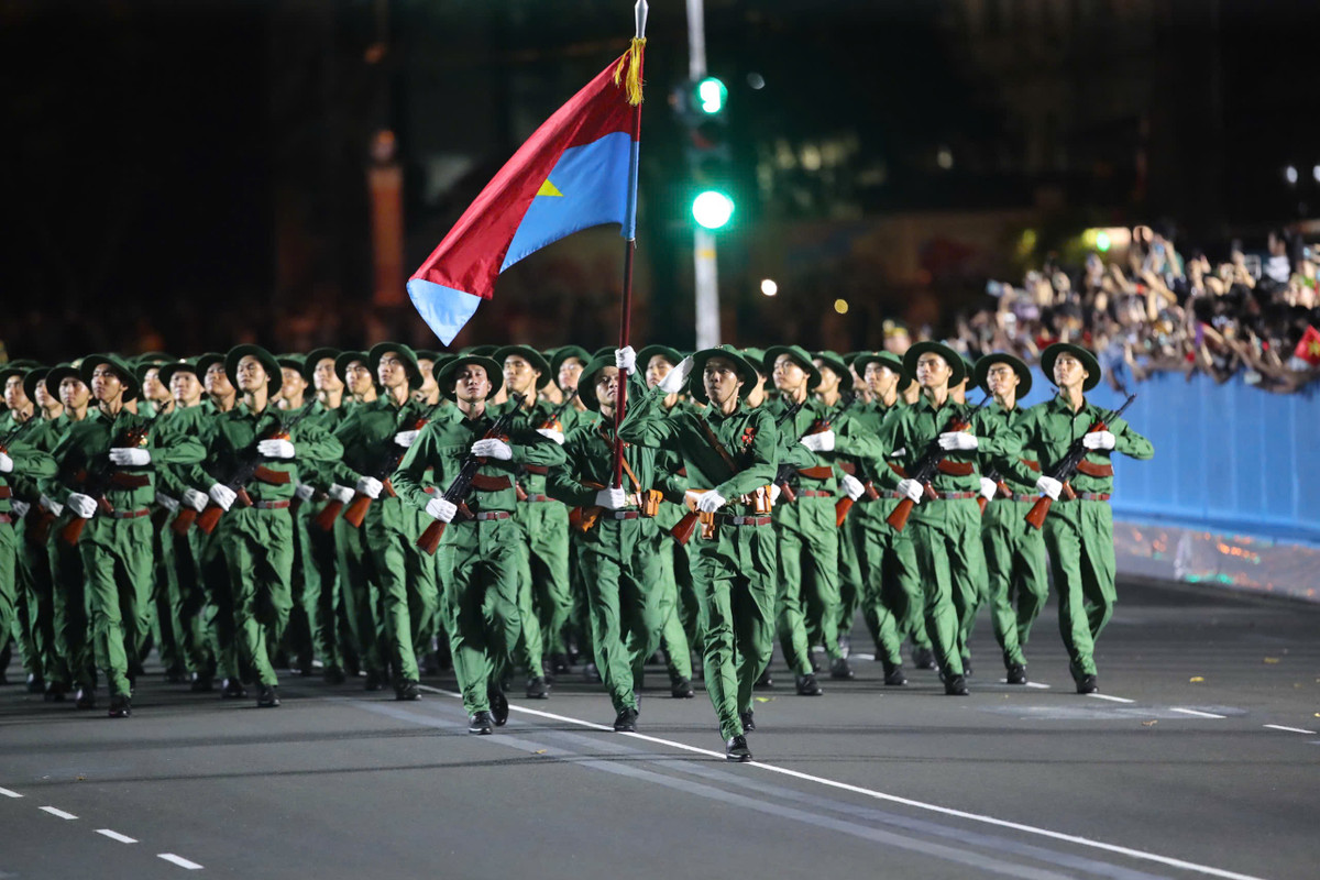 Đội hình diễu binh, diễu hành tại đường Lê Duẩn nhằm tái hiện khí thế hào hùng của Cuộc tổng tiến công và nổi dậy mùa xuân năm 1975, đỉnh cao là chiến dịch Hồ Chí Minh.