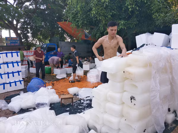 Vào những ngày này theo ghi nhận của phóng viên Báo NTNN/Dân Việt, các cơ sở thu mua vải thiều tại các vùng của huyện Lục Ngạn đang hoạt động rất tất bật, khẩn trương. "Để đóng hàng cho khách đưa về Trung Quốc, trung bình mỗi ngày cơ sở của tôi tiêu tốn cả trăm cây đá và hàng nghìn thùng xốp", ông Minh, một chủ cơ sở thu mua vải thiều ở Lục Ngạn chia sẻ.