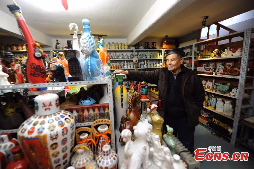 Để có được bộ sưu tập chai đựng rượu khổng lồ, ông Liu đã thu thập trong suốt hơn 30 năm qua.