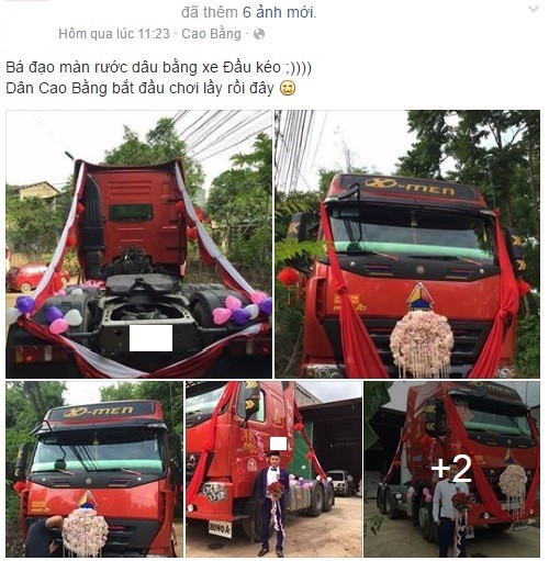 Cách đây chưa lâu, một cặp đôi cũng chọn xe đầu kéo để rước dâu.