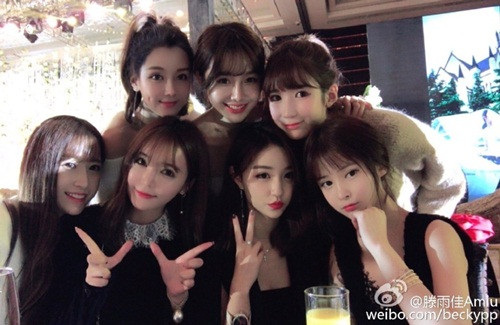 San San chụp ảnh kỷ niệm cùng với những hot girl khác.