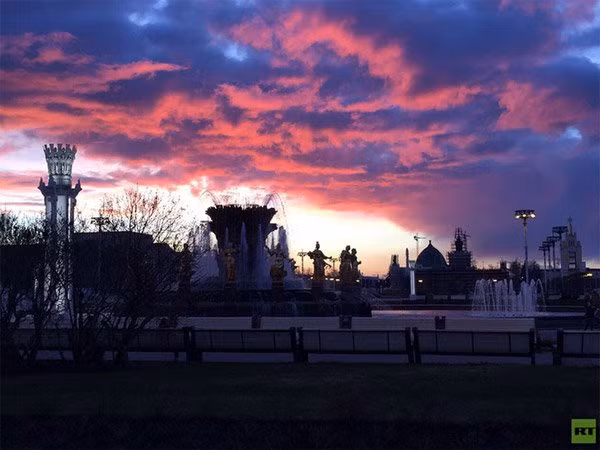 Vào thời điểm này năm nay, thủ đô Nga không có bầu trời xanh vì mưa, nhiều mây, thậm chí có tuyết. Nhưng một ngày nắng ấm đã dẫn tới một buổi tối với cảnh tượng thiên nhiên lạ mắt.