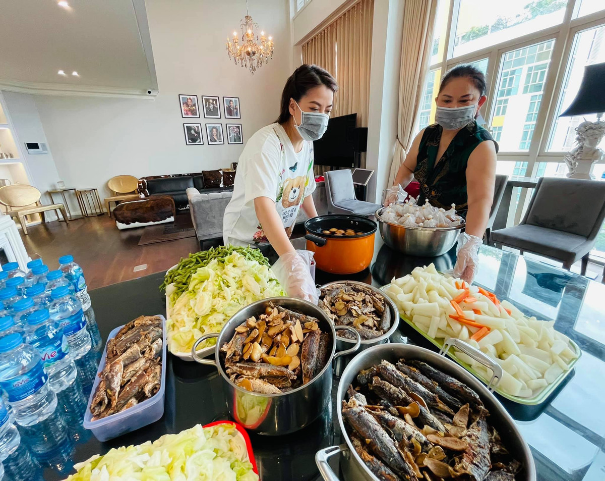 Mỹ Uyên tự hào dàn diễn viên sân khấu 5B đã thực hiện hoạt động bếp "Chia sẻ yêu thương" hiệu quả, giúp đỡ nhiều người khó khăn.
