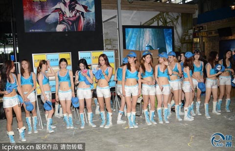 Dàn showgirl chân dài và xinh đẹp này đã có buổi tập dượt trước khi Hội chợ game ChinaJoy 2013 diễn ra vào ngày 25-28/7. Nguồn: Xinhuanet.com/icpress.cn.