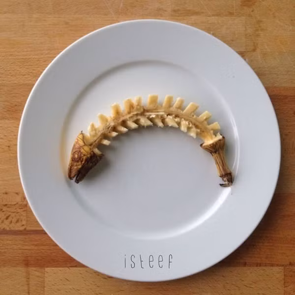 Trong suy nghĩ của nhiều người, quả chuối chỉ có tác dụng để ăn chứ ít ai ngờ rằng nó còn một tác dụng nữa đó là làm vật liệu điêu khắc. Từ hai quả chuối, Stephan Brusche, một nghệ sĩ người Hà Lan, đã biến nó thành một bức tranh điêu khắc về sự kiện "Đại hồng thủy" khá vui mắt.