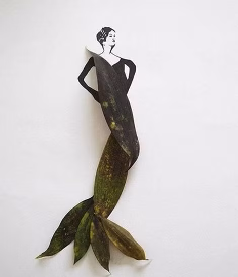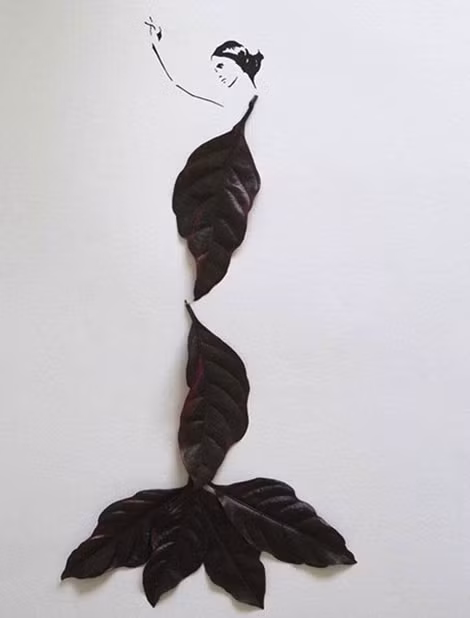 Hình ảnh một người phụ nữ quý phái, được làm từ lá