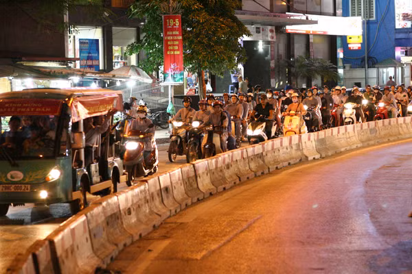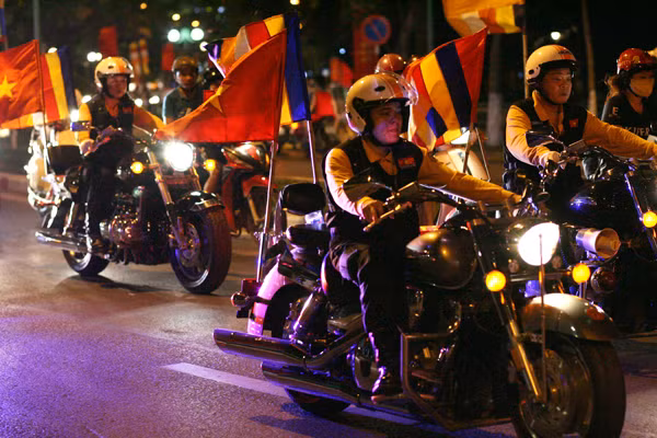 Đoàn diễu hành được các thành viên CLB Mô tô Hà Nội hộ tống.