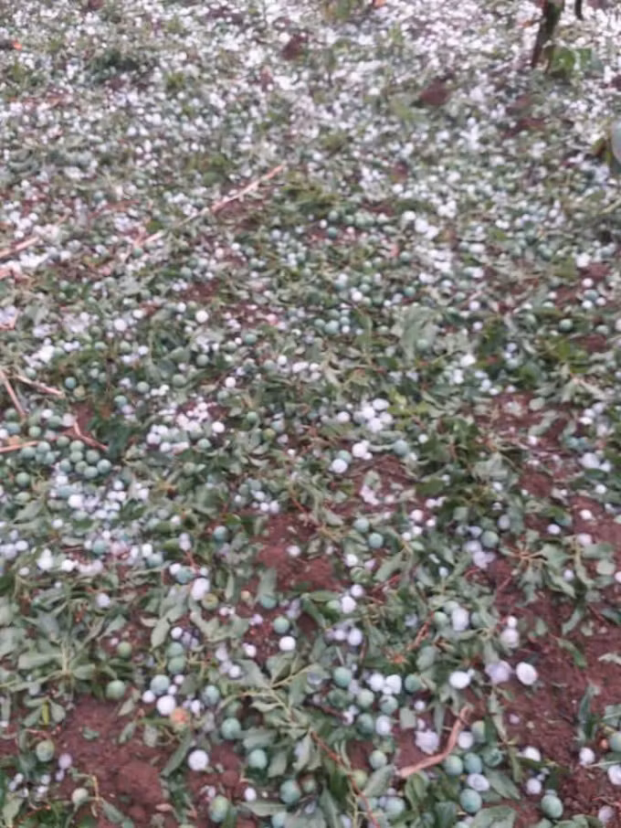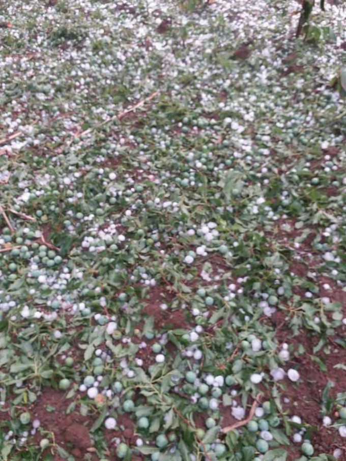 | Trận mưa đá làm tan hoang nhiều vườn mận, mơ, nông sản của người dân. Ảnh: Facebook Hoa Anh Túc. |