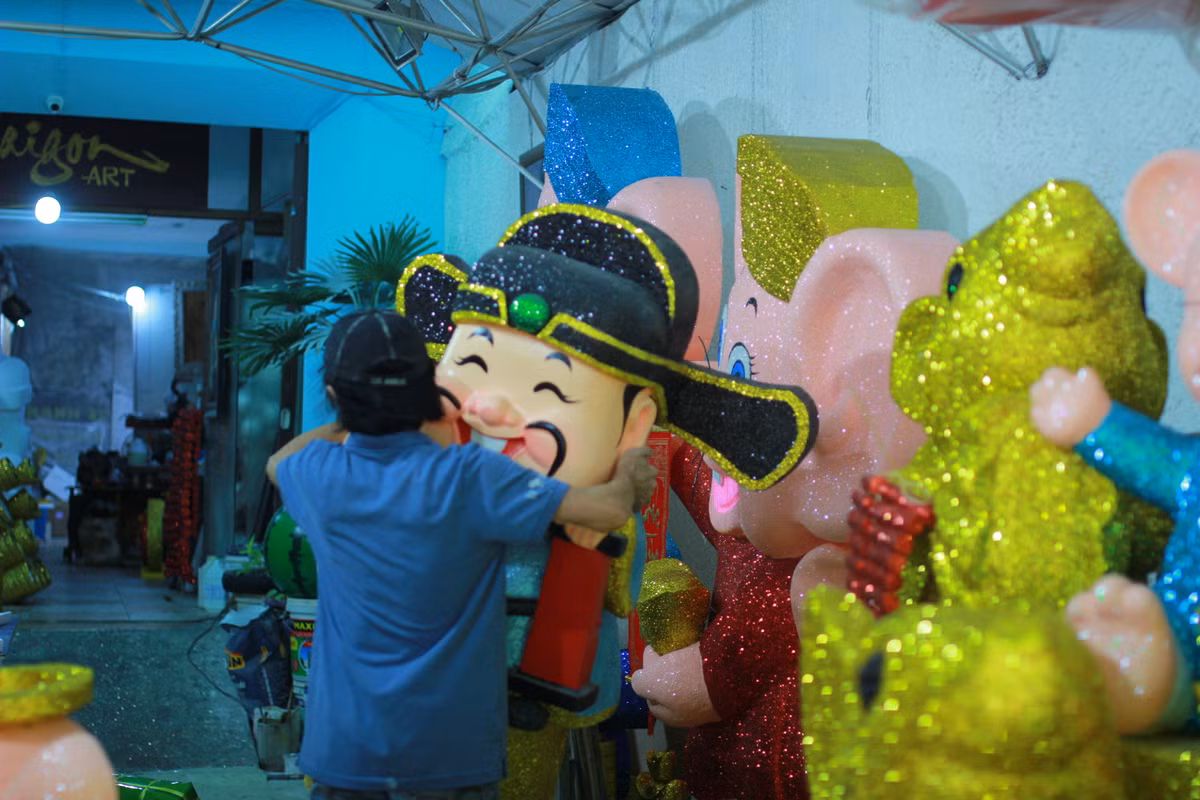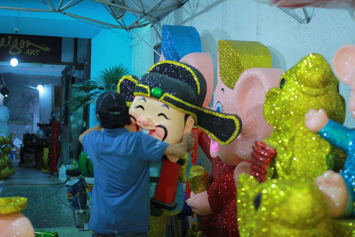 Chủ của cơ sở sản xuất mô hình mút xốp Sài Gòn Mới (đường Trần Hưng Đạo, quận 5) cho biết, những mô hình này được sản xuất để phục vụ cho người dân, các đơn vị, công ty,... ở TP là chủ yếu. "Năm nay linh vật Tết là chú chuột, cách đây khoảng 1 tháng chúng tôi bắt đầu chuẩn bị làm, và nhận đơn hàng từ khách đặt trước, tuy nhiên nhân lực ít nên cũng không thể làm xuể được" - chủ cơ sở này cho biết.