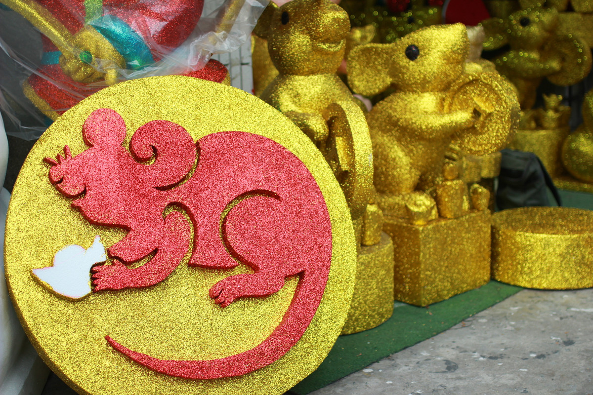 Những chú chuột được cắt tạo hình từ xốp, sau đó được sơn màu, phủ kim tuyến và sau cùng là đem phơi khô. Tắt cả các công đoạn trên đều làm thủ công, và mất khá nhiều thời gian để hoàn thành.