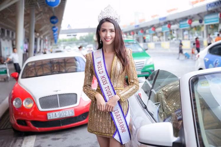 Không chỉ thu hút bởi nhan sắc xinh đẹp, dàn siêu xe với toàn thương hiệu nổi tiếng như: Roll - Royce. BMW, Mezcedes nối đuôi nhau chờ đón Phan Thị Mơ trước cửa sân bay Tân Sơn Nhất cũng lập tức thu hút sự chú ý của nhiều người.