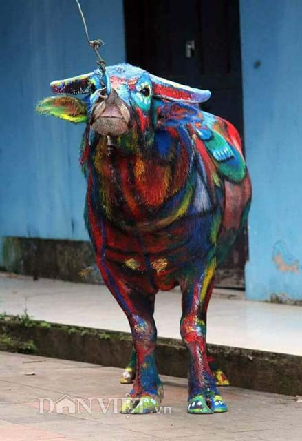 Một số hình ảnh khác về những chú trâu được "trang điểm" vui mắt.