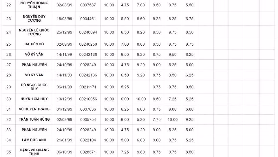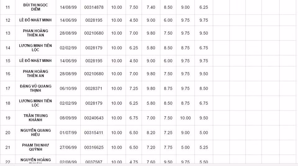 Dưới đây là danh sách 100 thí sinh đạt điểm thi cao nhất trong cả nước: