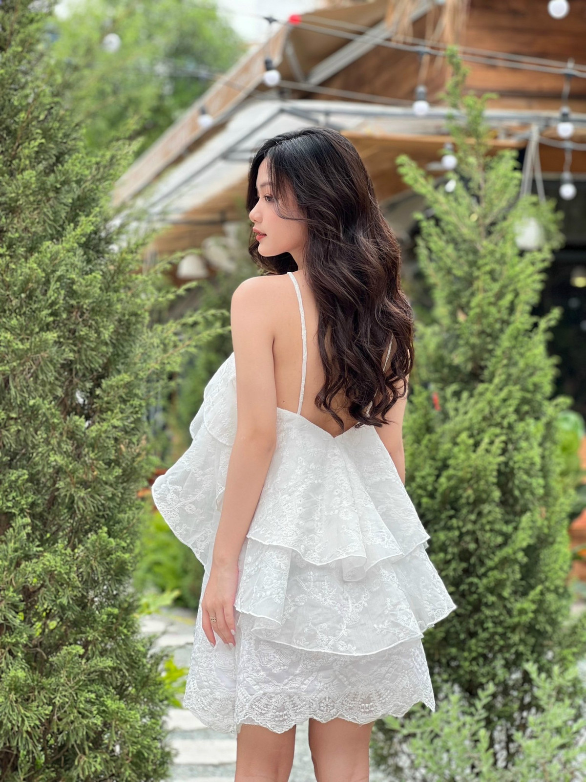 Cô thu hút khi diện váy cổ yếm hở lưng sáng màu