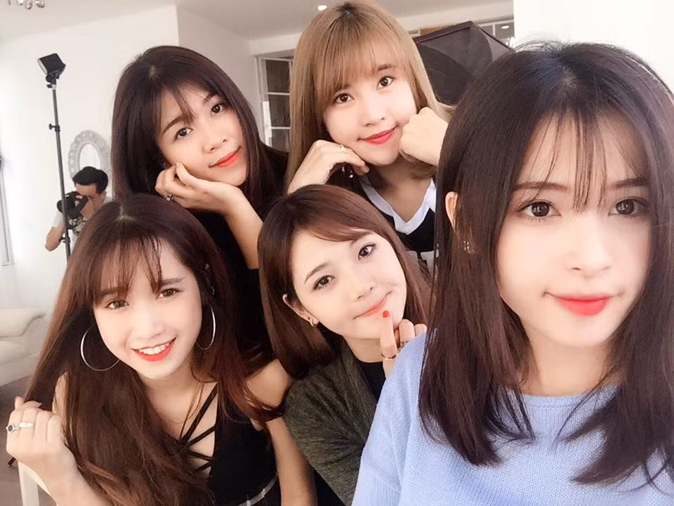 Lê Thu Hương và những bạn gái xinh xắn. Ảnh: Facebook.