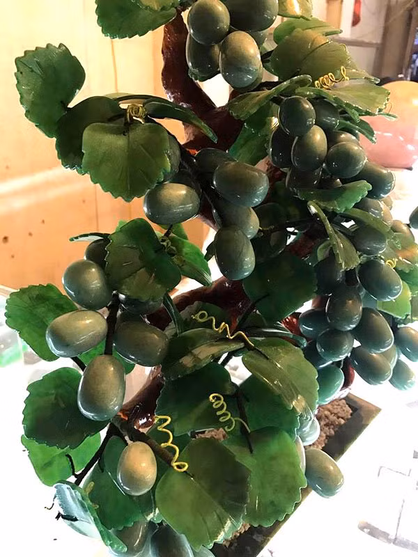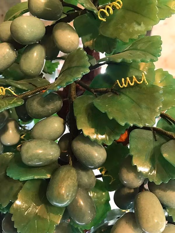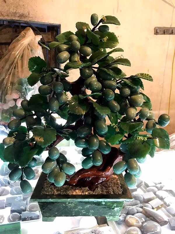 Theo anh Đỗ Quang Khánh, một chuyên gia về đá, 90% nguyên liệu để chế tác ra một cây đào hay nho cảnh đang bày bán trên thị trường là đá quý và bán quý. Năm nay, loại cây này được nhiều người chú ý, nhất là các đại gia vì nó không chỉ mang ý nghĩa phong thủy cầu tài lộc mà như loại cây cảnh trưng Tết, thể hiện đẳng cấp.