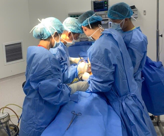 Do bệnh nhân có phủ tạng đảo ngược nên bác sĩ phải thao tác ngược khi phẫu thuật so với người bình thường. Ảnh: BSCC.