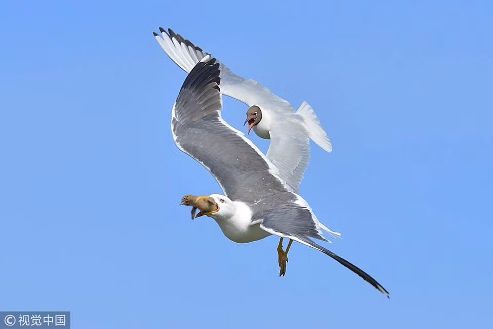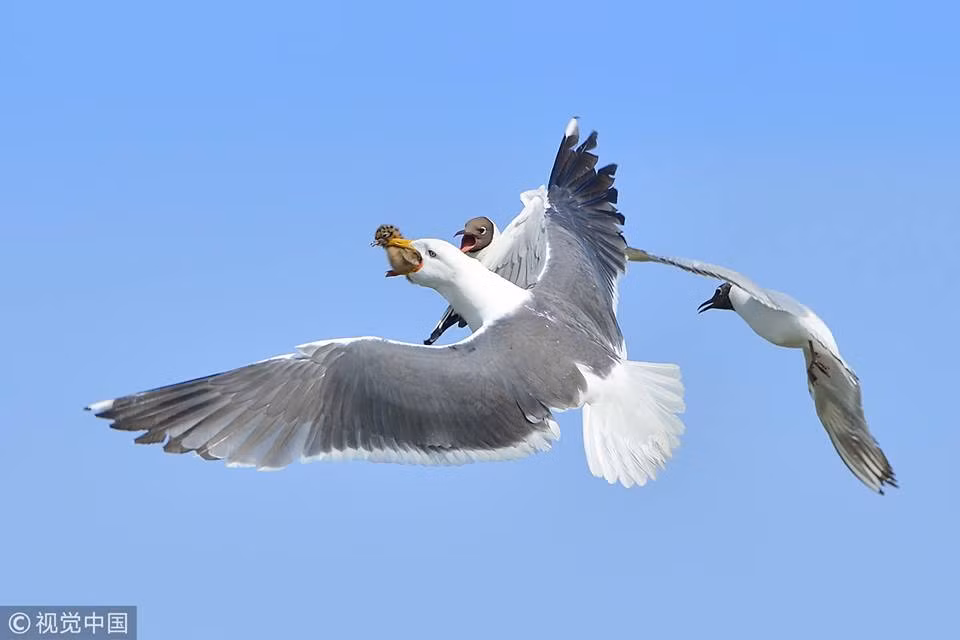 Không đành lòng nhìn chim non bé bỏng bị mòng biển lớn hung dữ bắt đi, chim mòng biển đầu đen mẹ vội vã đuổi theo. Trong cơn tuyệt vọng, chim mẹ điên cuồng mổ vào cánh và đầu của mòng biển lớn, mong rằng điều đó có thể cứu được con mình.