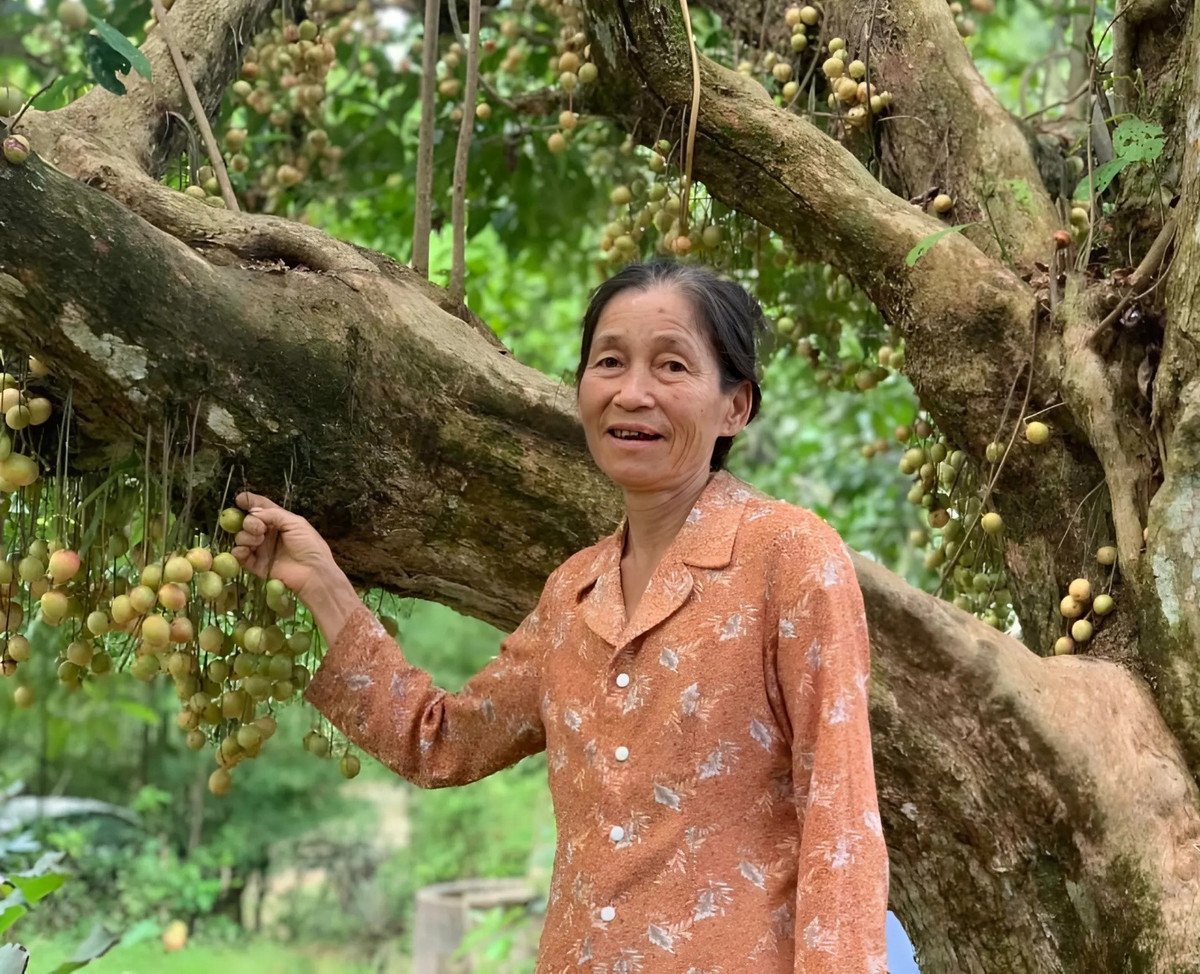 Bà Trần Thị Hòa (Hà Tĩnh) cũng là người nông dân gắn bó lâu năm với các giống vật nuôi, cây trồng tại địa phương. Gia đình bà Hòa hiện có gốc cây dâu da cổ thụ, nhiều người vào trả giá hàng chục triệu nhưng bà không bán. Điều đặc biệt là vườn dâu da nhà bà Hòa còn trở thành khu du lịch thu hút nhiều người tới thăm quan, check-in.