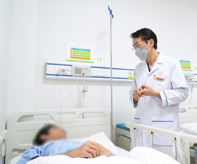 ThS.BS Đinh Hữu Việt thăm khám cho bệnh nhân sau phẫu thuật.