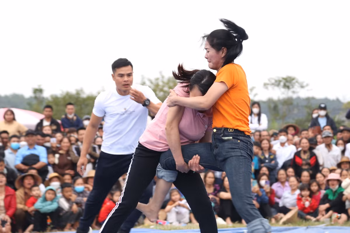 Đầu xuân, xem thôn nữ khoe sức mạnh trên sới vật